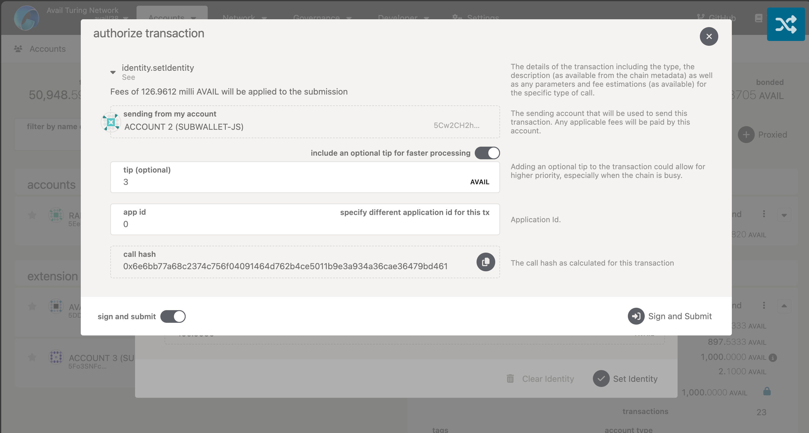 - Each account on Avail can create a main identity and up to 100 sub-identities.