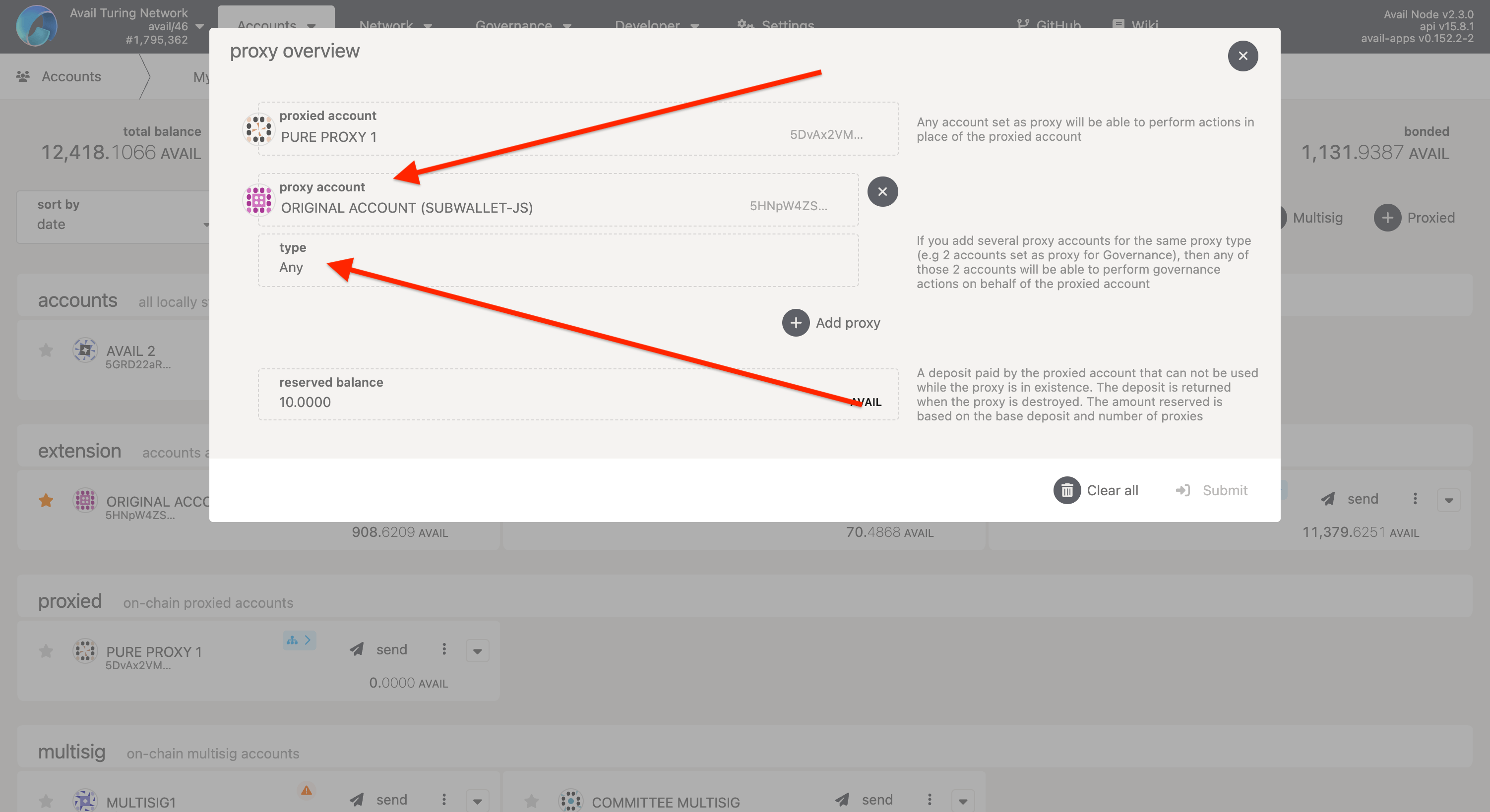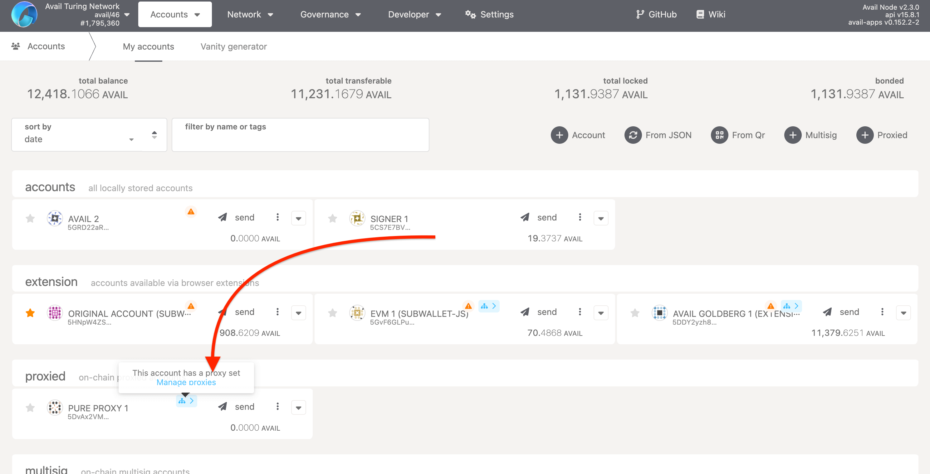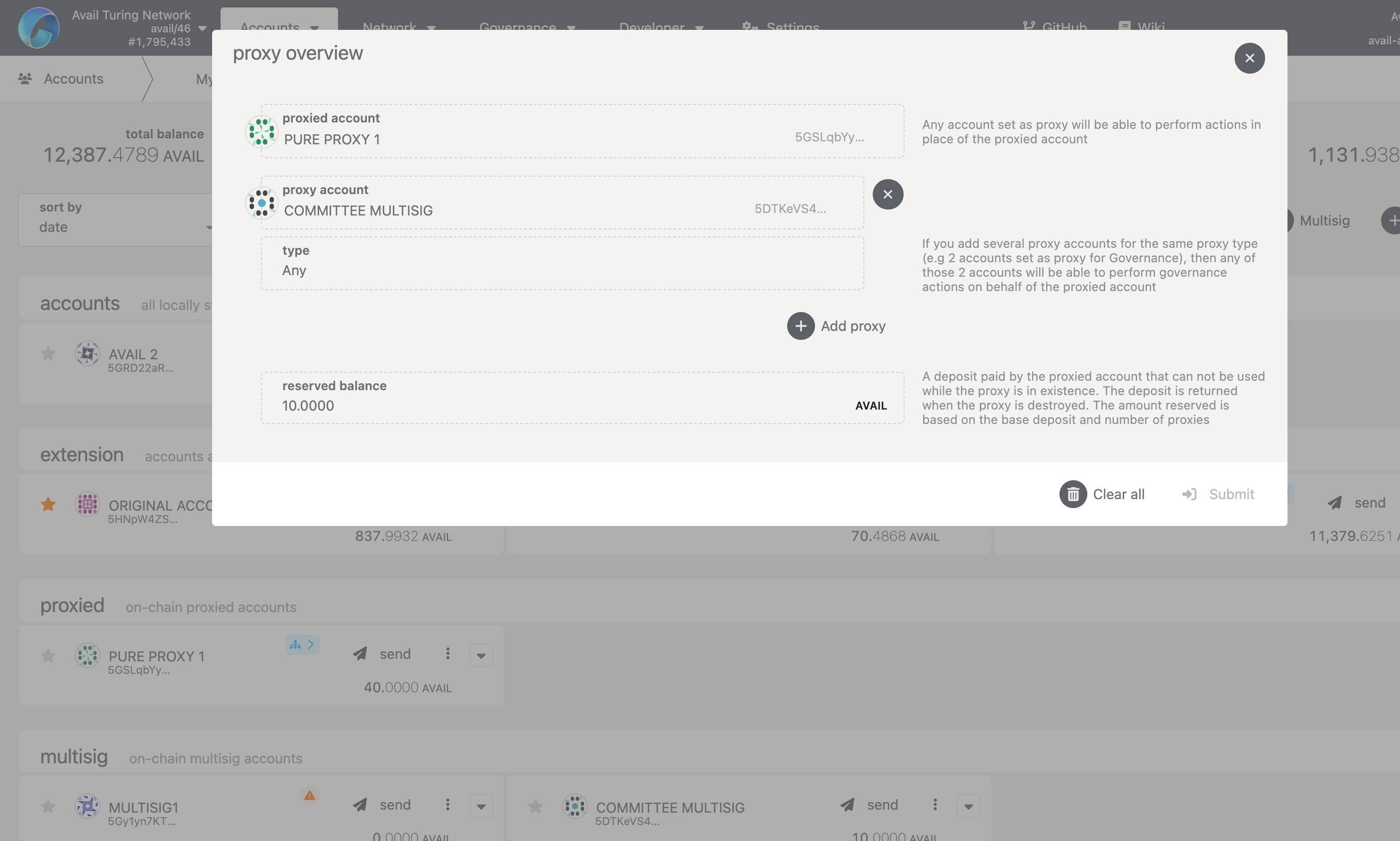 Pure proxy accounts on Avail