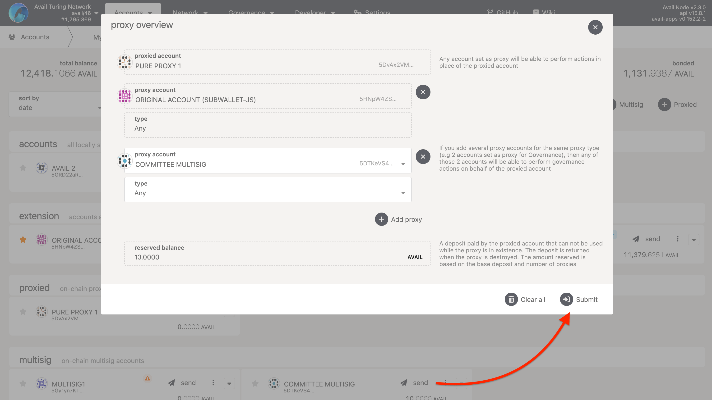 1. Click on the ‘Add proxy’ button and select your multisig address from the dropdown menu as the proxy.