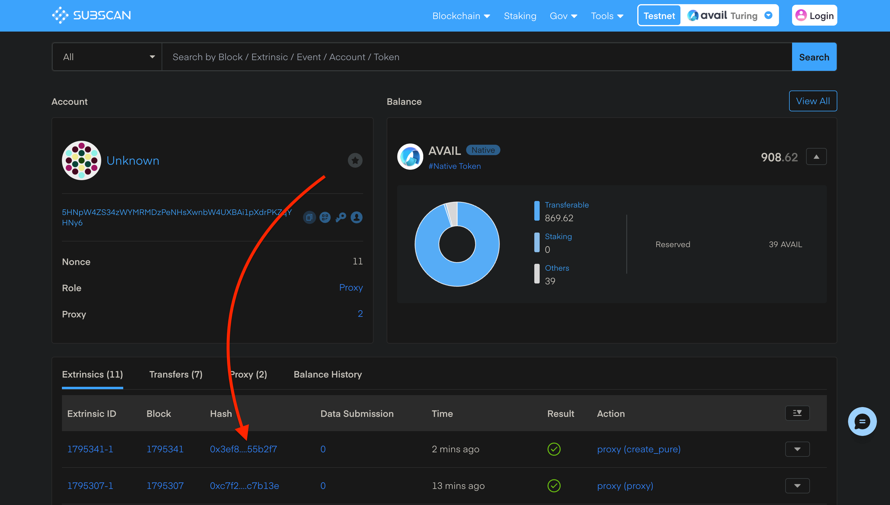 2. Once the transaction is successful, you should see that the pure proxy account now has two proxies.