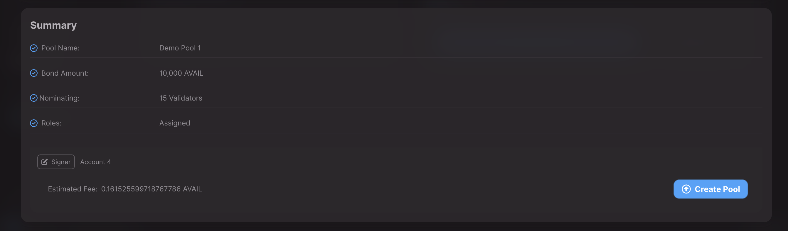 Please note that this tutorial showed you how to join a recommended nomination pool on Avail by clicking on the Ready to Join Pool button.